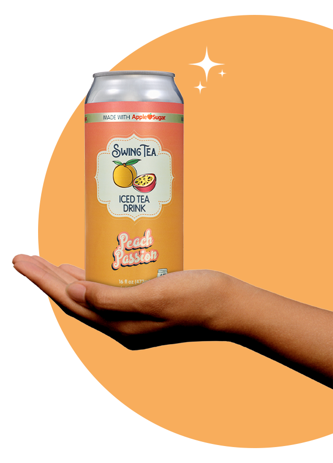 Taste the passion we brew into every sip of our Swing Tea Peach Passion Iced Tea. It’s bursting with peach flavor, naturally sweetened with Apple Sugar, and non-caffeinated so you can enjoy it during the hot summer days or cool summer nights.